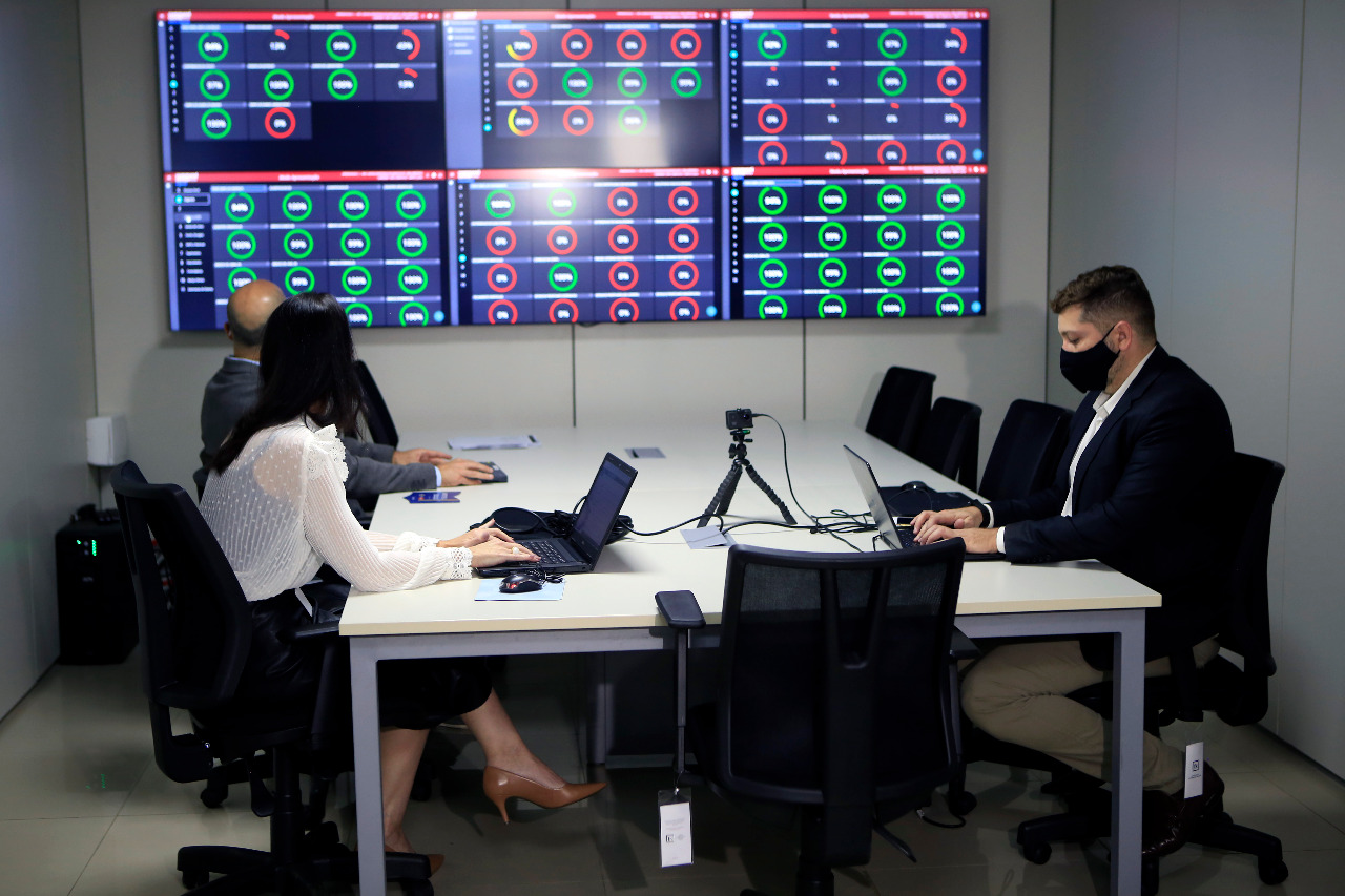 A solução tecnológica conta com um videowall com seis telas, seis profissionais capacitados do Iges-DF, seis computadores e duas telas para estudo de casos.