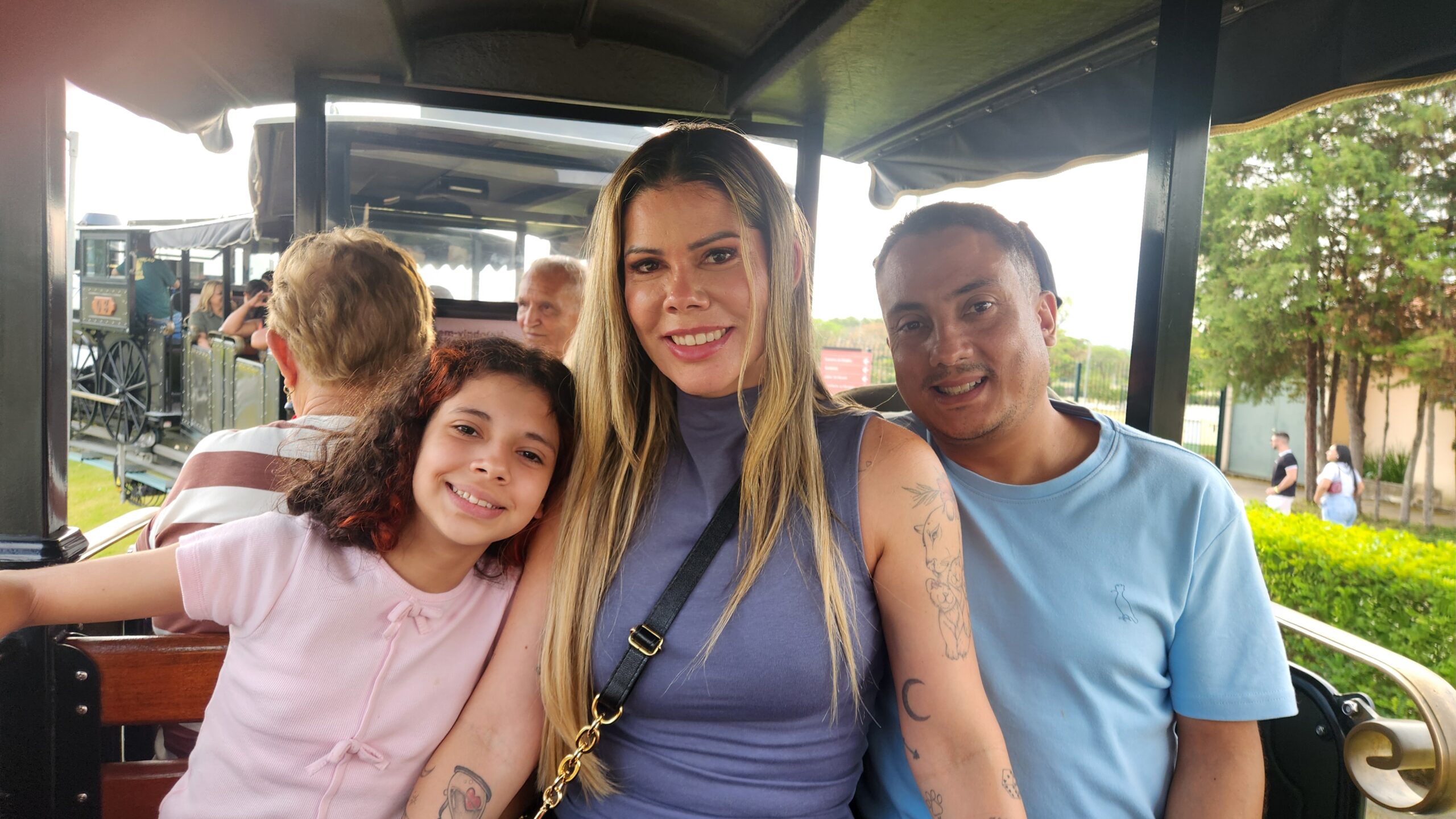 Ainda no mesmo dia, o passeio seguiu até o Mosteiro de São João das Monjas Beneditinas, um lugar de paz e contemplação, onde o silêncio e os jardins encantaram a família. Depois de um momento de oração, foi hora de voltar a Aparecida e conhecer a Cidade do Romeiro, de onde parte o famoso Trem do Devoto, uma réplica da antiga Maria Fumaça que liga o Santuário ao Porto Itaguaçu, local histórico onde foi encontrada a imagem original de Nossa Senhora Aparecida.