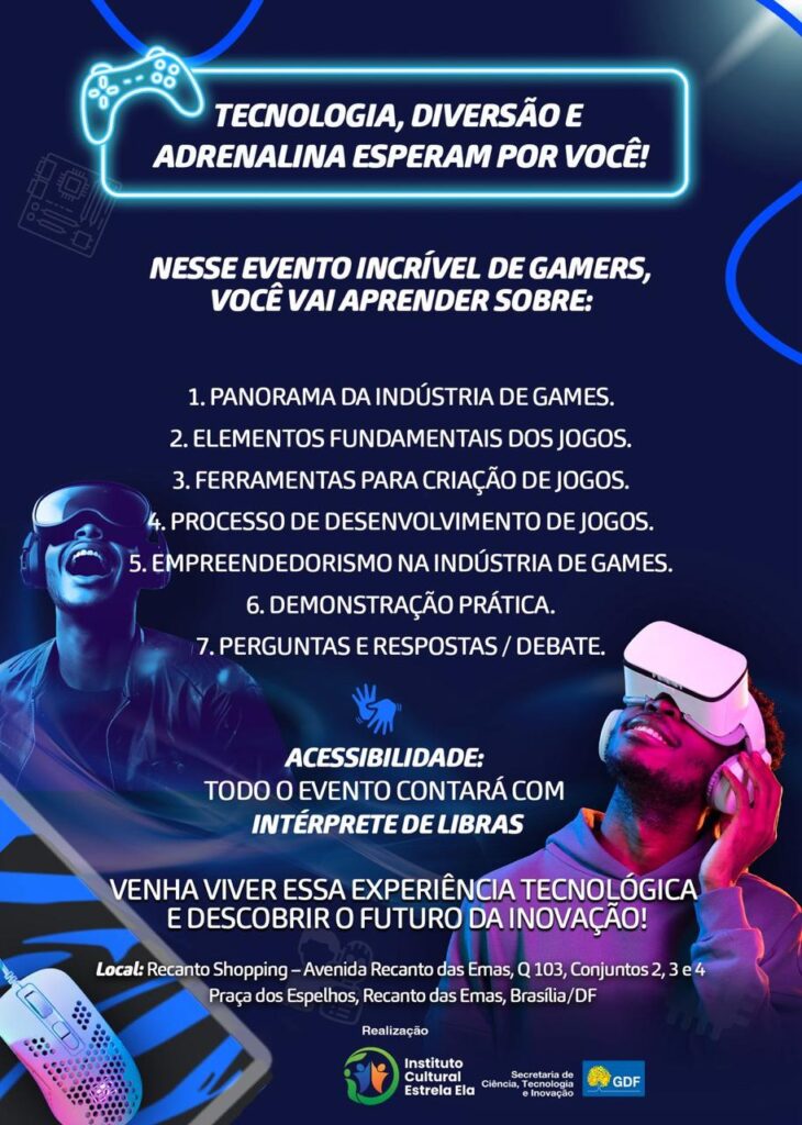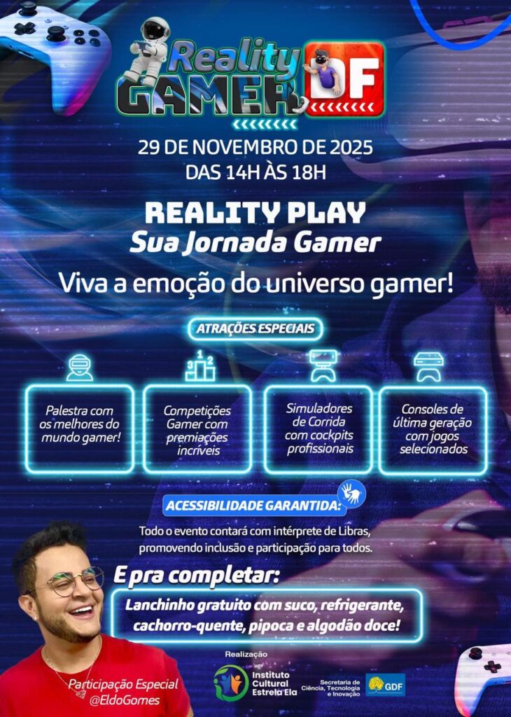 Para enriquecer ainda mais o debate, o evento contará com a participação especial de Eldo Gomes, comunicador, influenciador e criador de conteúdo, conhecido por sua atuação no ecossistema de inovação, turismo e cultura digital em Brasília. Eldo levará ao público reflexões sobre tendências, criação de conteúdo e o impacto do universo gamer no cotidiano dos jovens.