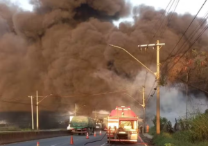 Contagem (MG): galpão com pneus e plástico pega fogo e forma nuvem tóxica