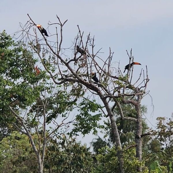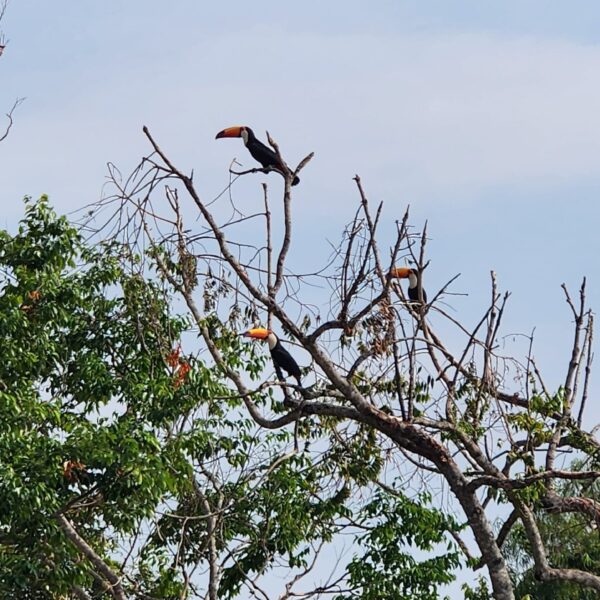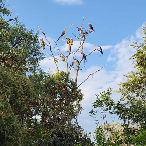 Saímos na sexta-feira, dia 17, rumo à Chapada dos Veadeiros e já na estrada, aquela sensação boa de estar prestes a reencontrar a natureza. Ao chegar, fomos recebidos com um sorriso acolhedor e um cenário que parece saído de um cartão-postal: montanhas imponentes, araras coloridas cruzando o céu, tucanos pousando nas árvores e o som dos micos ecoando ao longe.