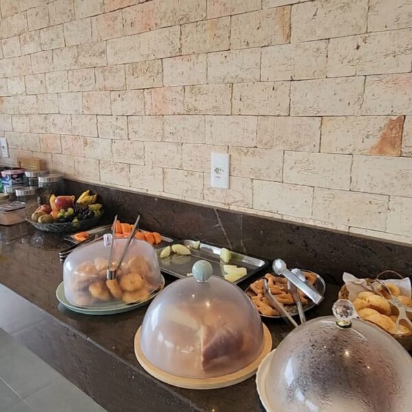 O café da manhã colonial é outro ponto alto. Pães caseiros, frutas da estação, bolos e sucos naturais tudo preparado com um toque de carinho que a gente sente logo na primeira mordida. E a recepção, com sua decoração leve e iluminação natural, dá o tom do que é a Villa Tereza: um espaço feito para acolher.